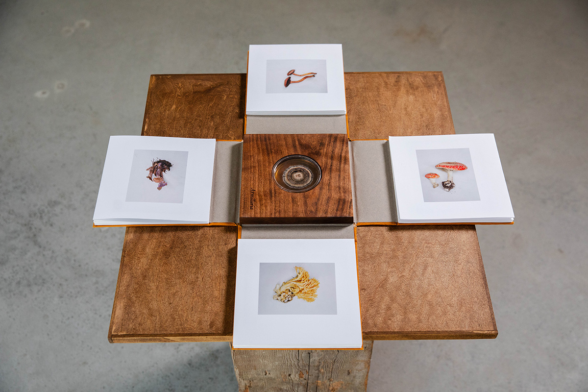 A series exploring the largest living organism in the world by photographer Jonah Reenders. Reenders studied Environmental Science and worked as a field biologist for almost a decade. As an artist he is interested in the relationship between humanity and the natural world, collecting data through imagery to weave together narratives that question our ecological understanding. “Armillaria” explores queer ecology by investigating the Armillaria ostoyae or humongous fungus. Found in the Malheur National Forest, the fungi is estimated to be 10,000 years old. Reenders collected some mycelium and has been documenting its growth in agar plates. Using constructed narratives and explorations into the psychic landscape, this project seeks to understand our symbiotic relationship to ecological networks.