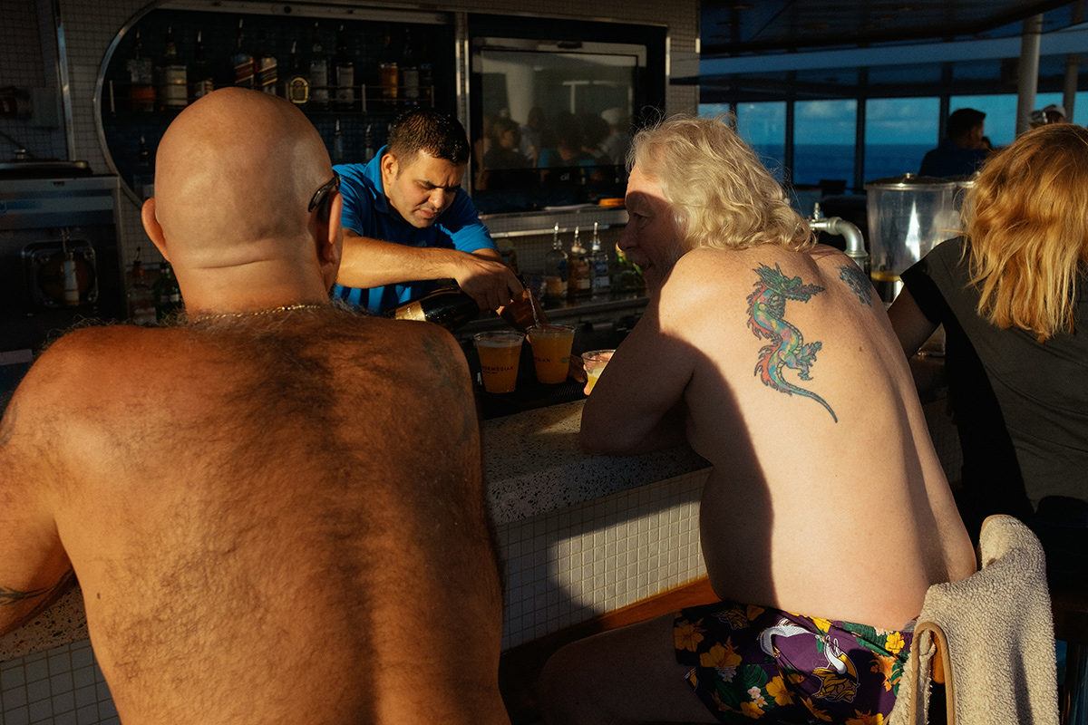 A satirical series by Los Angeles-based photographer Justin Gaar. “Empire” takes an anthropological approach to the cruise ship experience. The series, self-published as a booklet last year, explores the banality of imperialism and how it’s actively produced and reproduced through cruise tourism. Putting a glossy, postcard sheen on the naked hierarchies of power on a cruise ship, the images were taken on a single five-day cruise in the Caribbean in 2019 and marks Gaar’s first photo project.