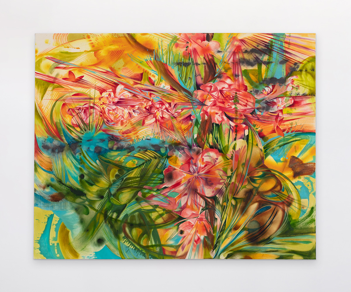 Vibrant paintings by artist Ji Won Cha. Born in Gyeonggi-do, South Korea and currently based in London, Cha earned her BFA in Painting from RISD and her MA in Painting from the Royal College of Art. Cha’s work offers up a sense of sublime fluctuation or controlled chaos. Her paintings capture the feeling of experiencing something both very quickly and in slow motion, creating a kind of deliberate turbulence. Taking images from nature as a starting point, Cha’s paintings evolve into new forms and energies, a fluid landscape operating by a logic all their own.