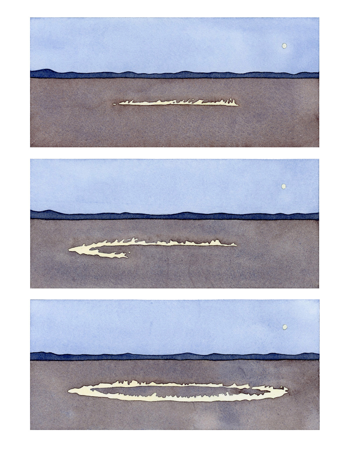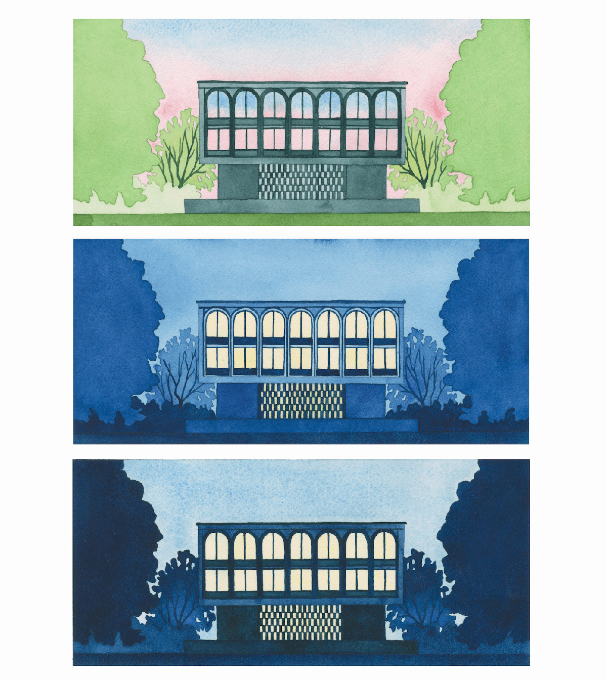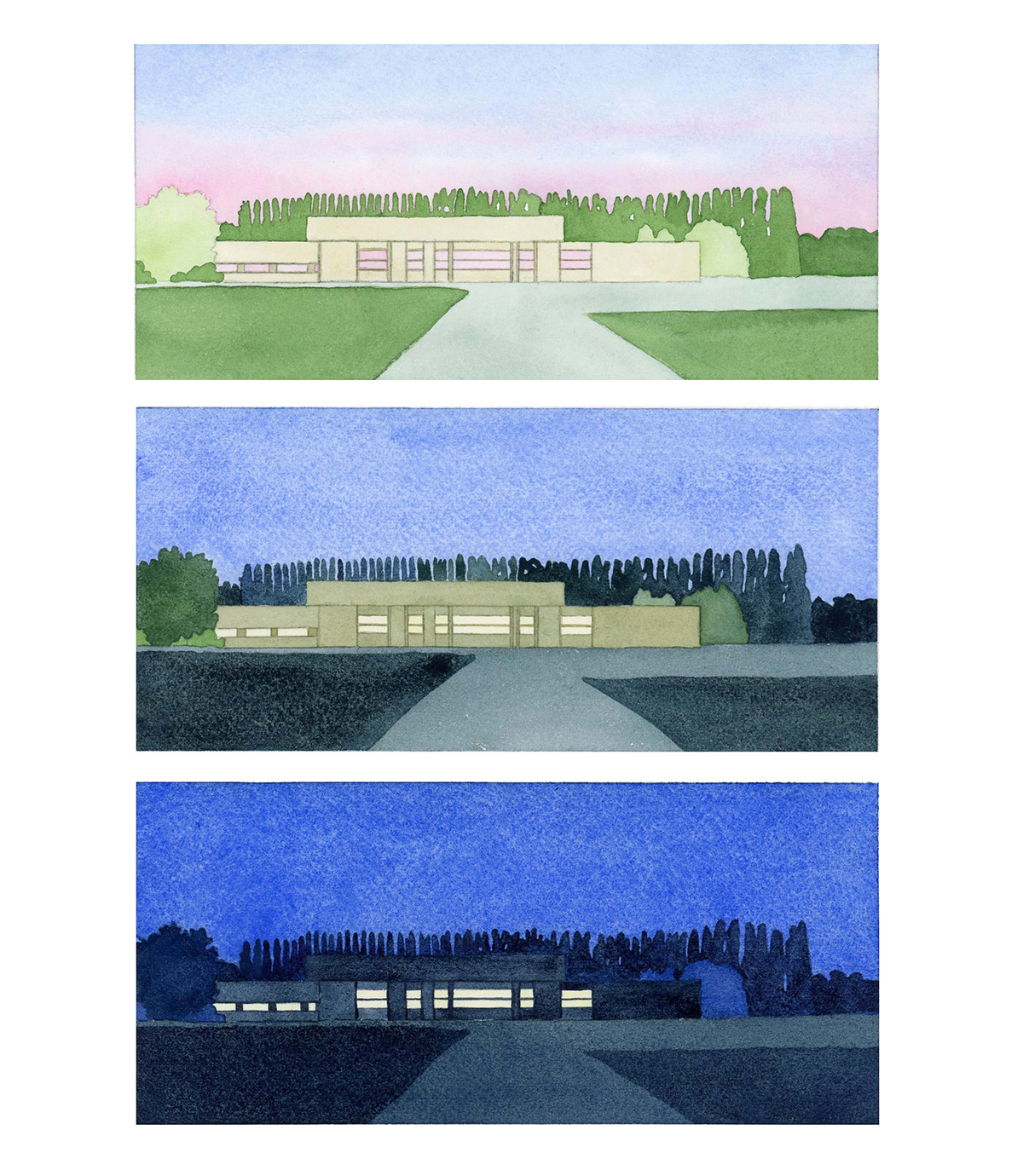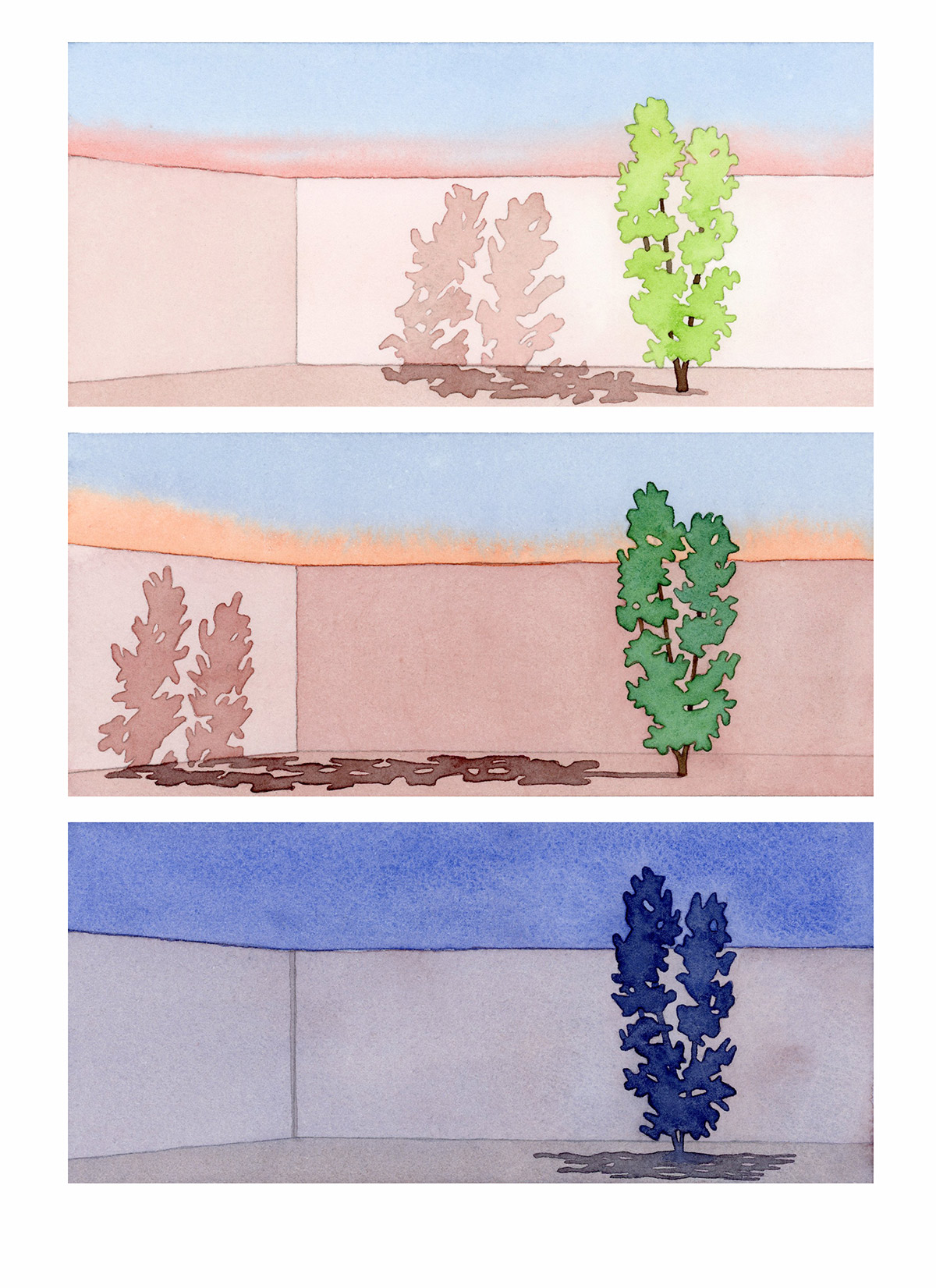 A selection of work from UK-based illustrator and artist Joanna Blémont. Using sequential frames, Blémont explores issues through multiple lenses. Her watercolours delve into ideas around time, place, and the boundary between the familiar and strange through everyday scenes. Her process involves working from memories, dreams, and photo archives. Blémont describes her practice as tracing “partially figurative scenes where details indicating a specific time or place are subtracted and the image seeks to appeal to a collective gaze. Natural forms and built environments intertwine ambiguously, immersing the viewer in the language of dreams.”