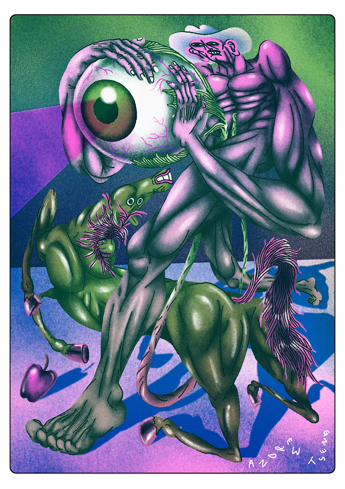 A selection of work by Amsterdam-based illustrator and artist Andrew Tseng. While initially studying psychology, Tseng eventually decided to follow his deep desire to pursue art and applied to art school. Whether working on commercial or personal projects, Tseng incorporates his abstract sense of humour and grotesque characters into all of his pieces. He also enjoys experimenting with printmaking techniques (screen printing and risograph printing) as well as ceramics, and often brings that tactile quality into even his digital work.