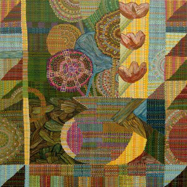 “My paintings acknowledge and reflect a world where female power is derived from collaboration, self-endowed agency, and connection with the natural world. I consider ideas of collection, adornment, beauty, and choice as the figures within the worlds of my work construct spaces that engage ideas of ritual and practice. These paintings in particular explore the quiet force of attention, and the ways in which we cultivate meaning by what we choose to tend to.”